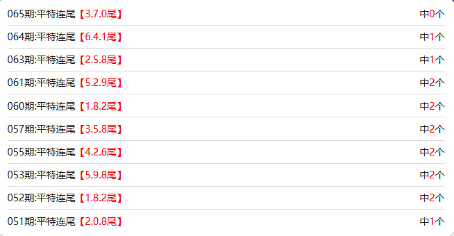 香港六合彩【65期】平特连尾