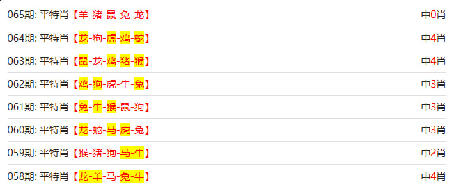 香港六合彩【65期】平特五连肖