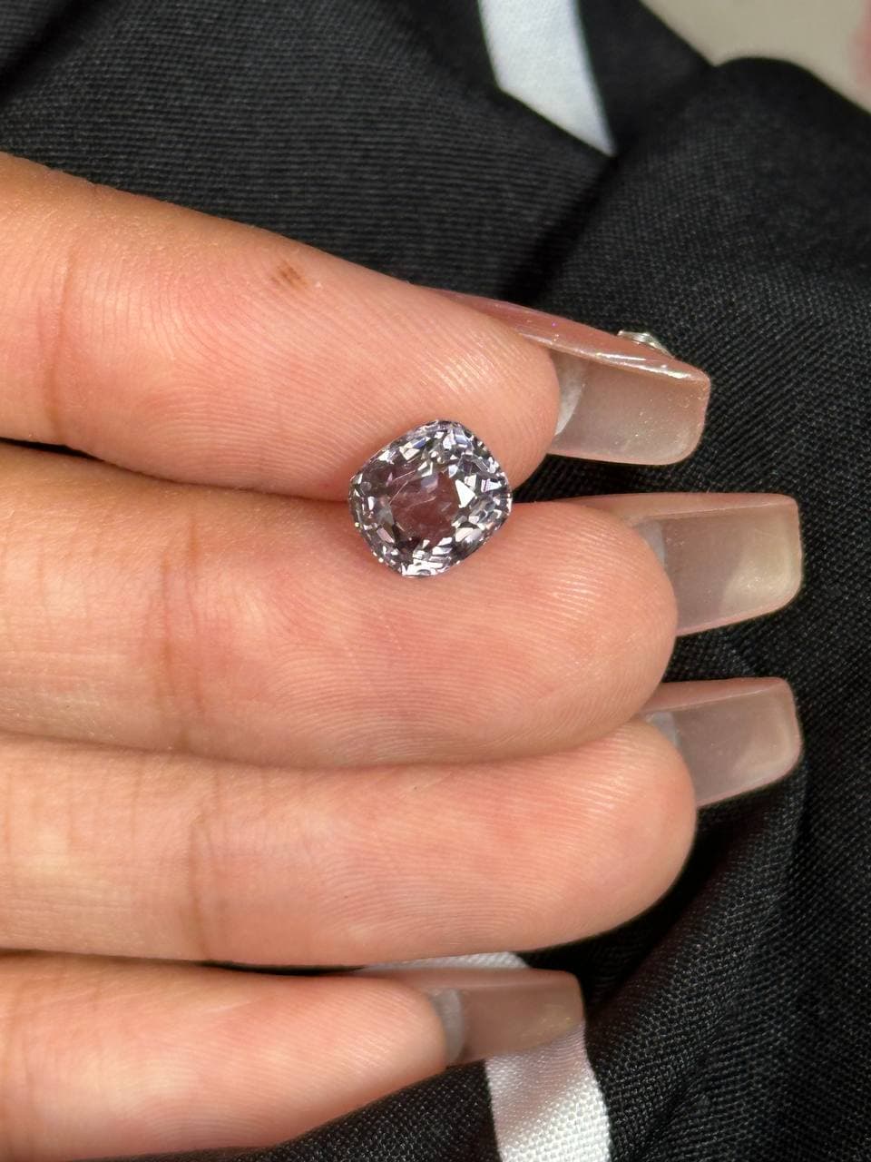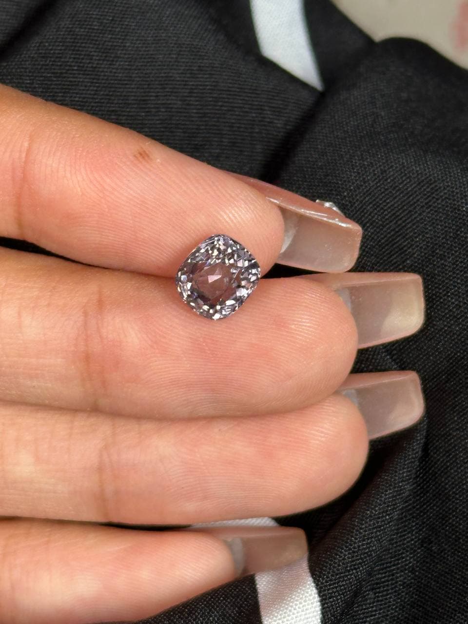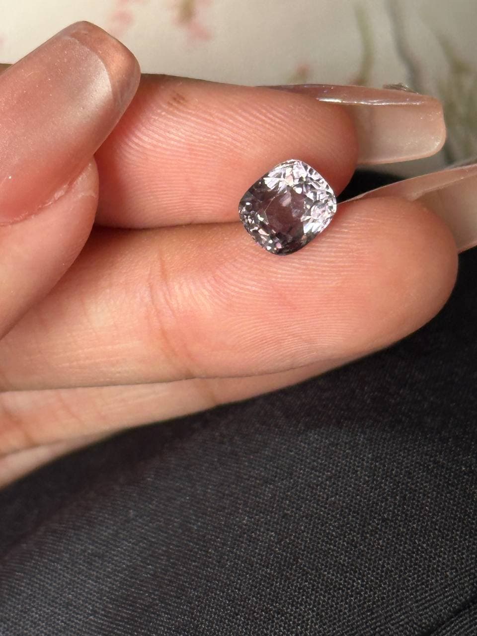 2.4ct 金属灰尖晶石 色调低调高级,带有独特的金属光泽感 质地细腻通透,切工精准,火彩闪耀动人 整体饱满干净,份量十足,极具收藏与佩戴价值 低调又不失个性,百搭又显品味的好选择