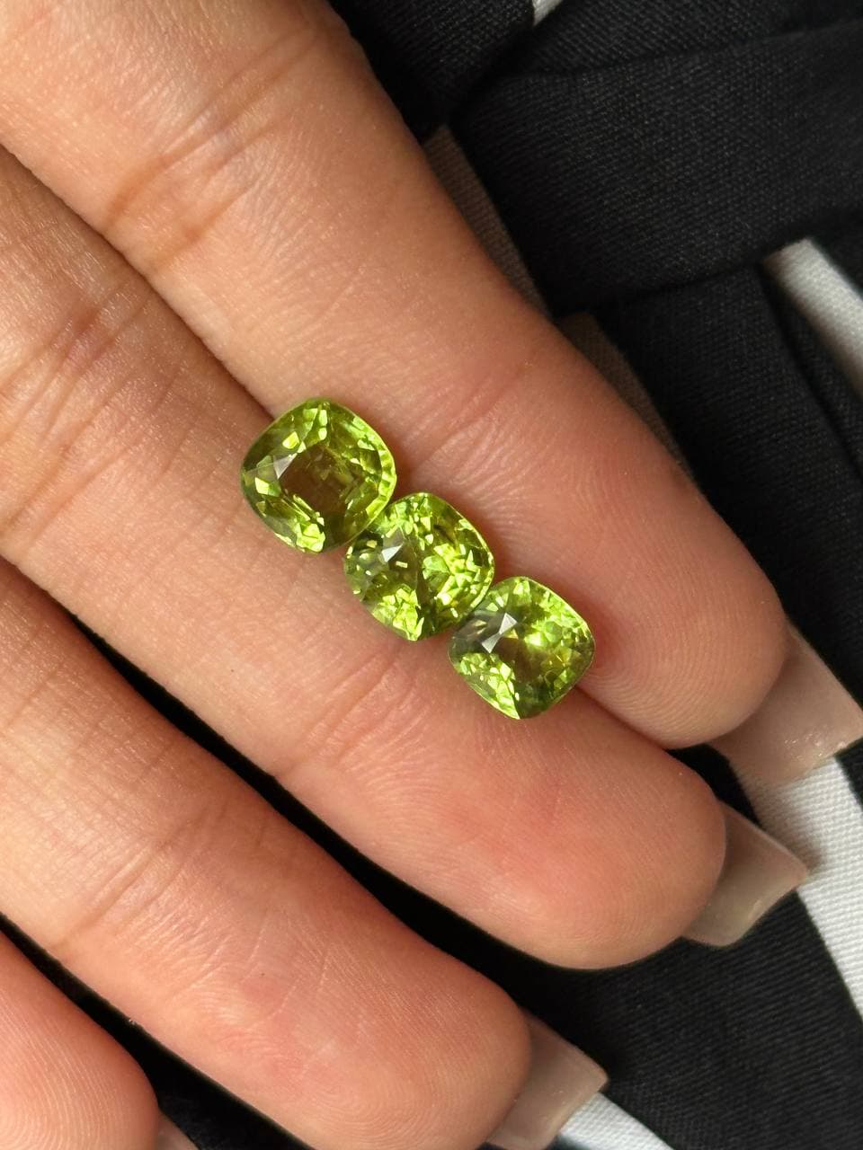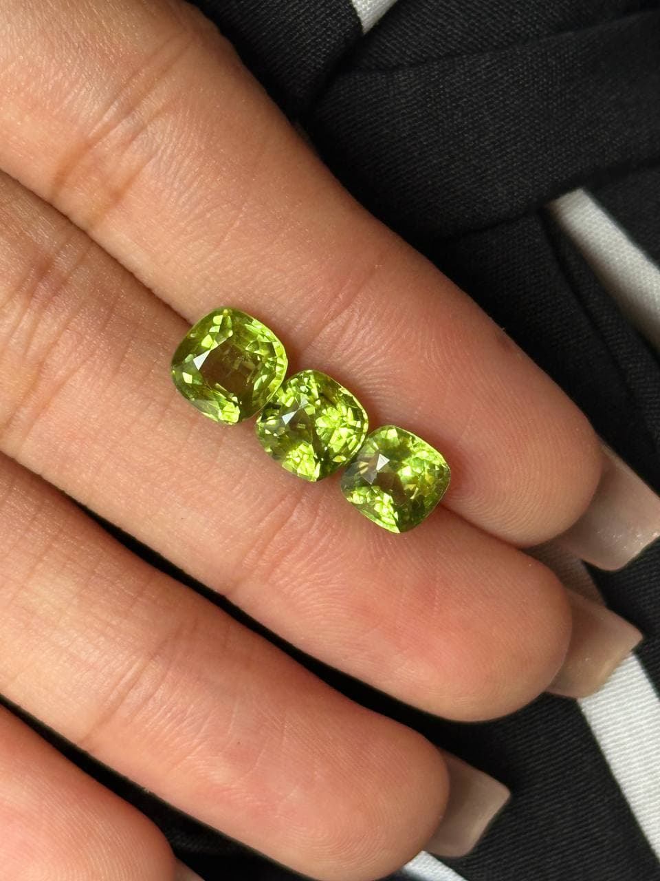 5.05ct 橄榄石一套 色泽自然温润,绿意盎然生机勃勃 质地通透细腻,光感柔和舒适 颗颗饱满均匀,整体协调完美 无论单戴还是叠戴,都尽显优雅气质