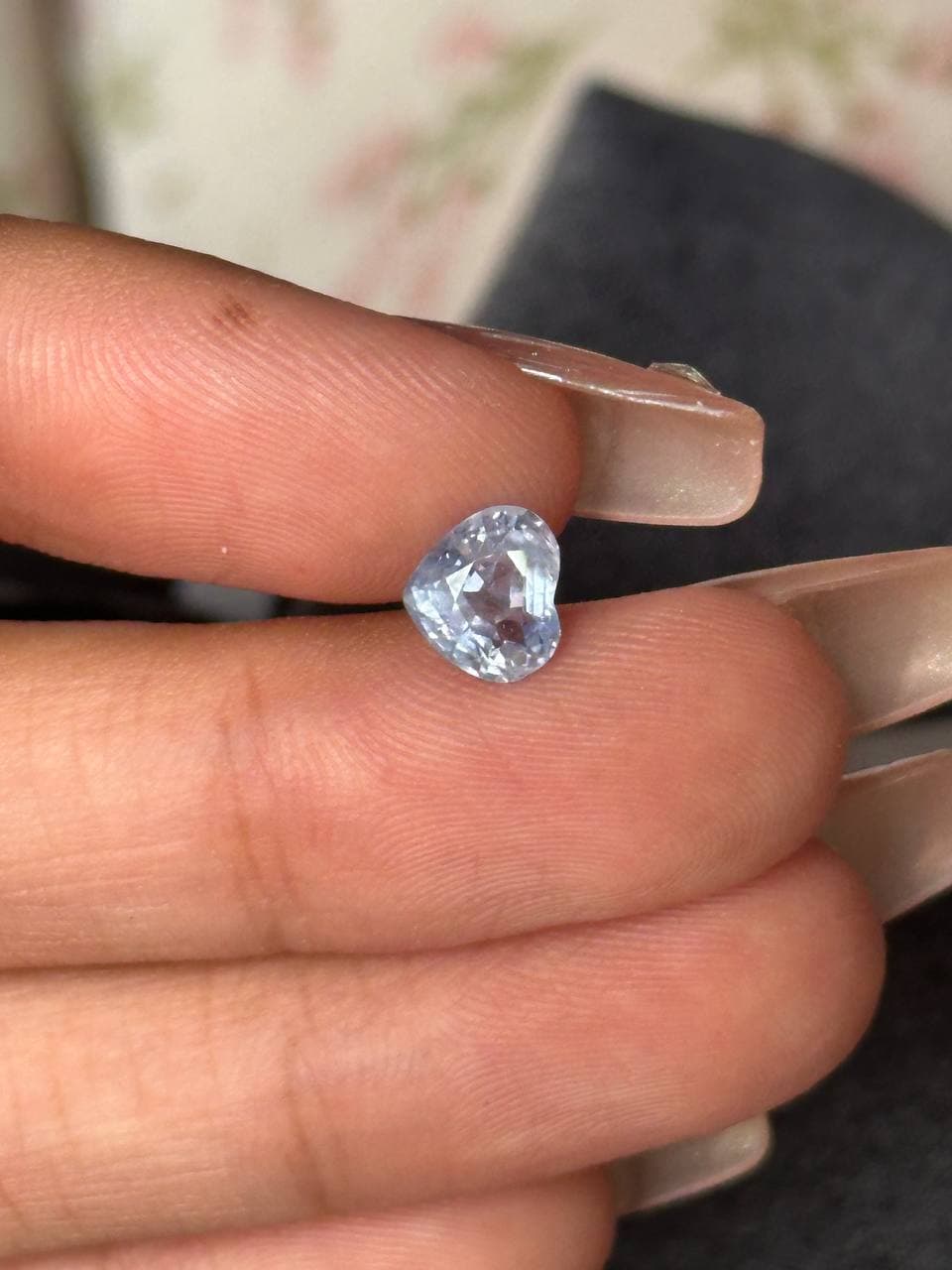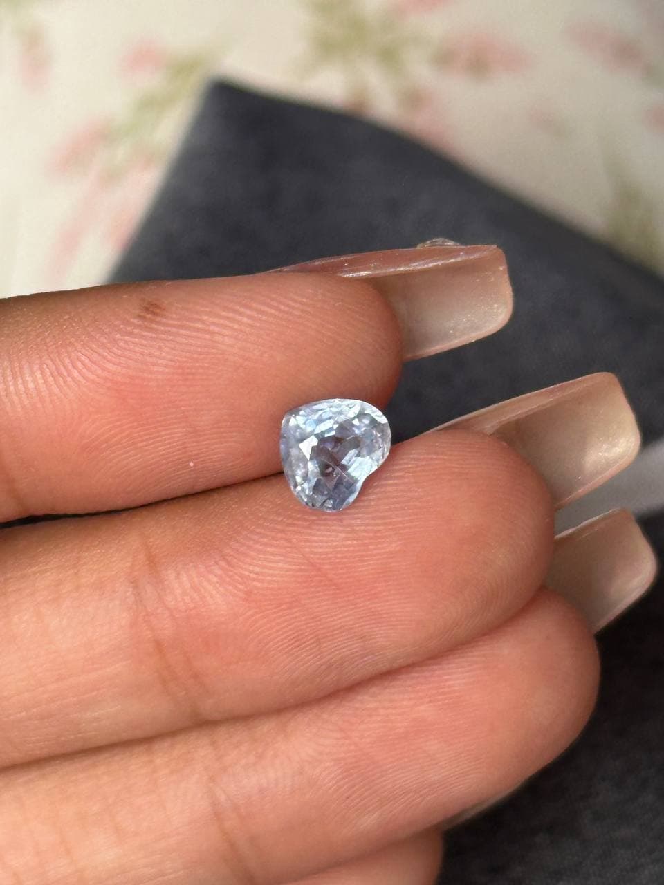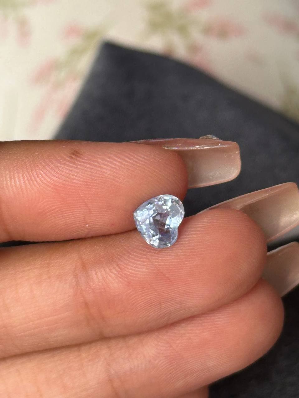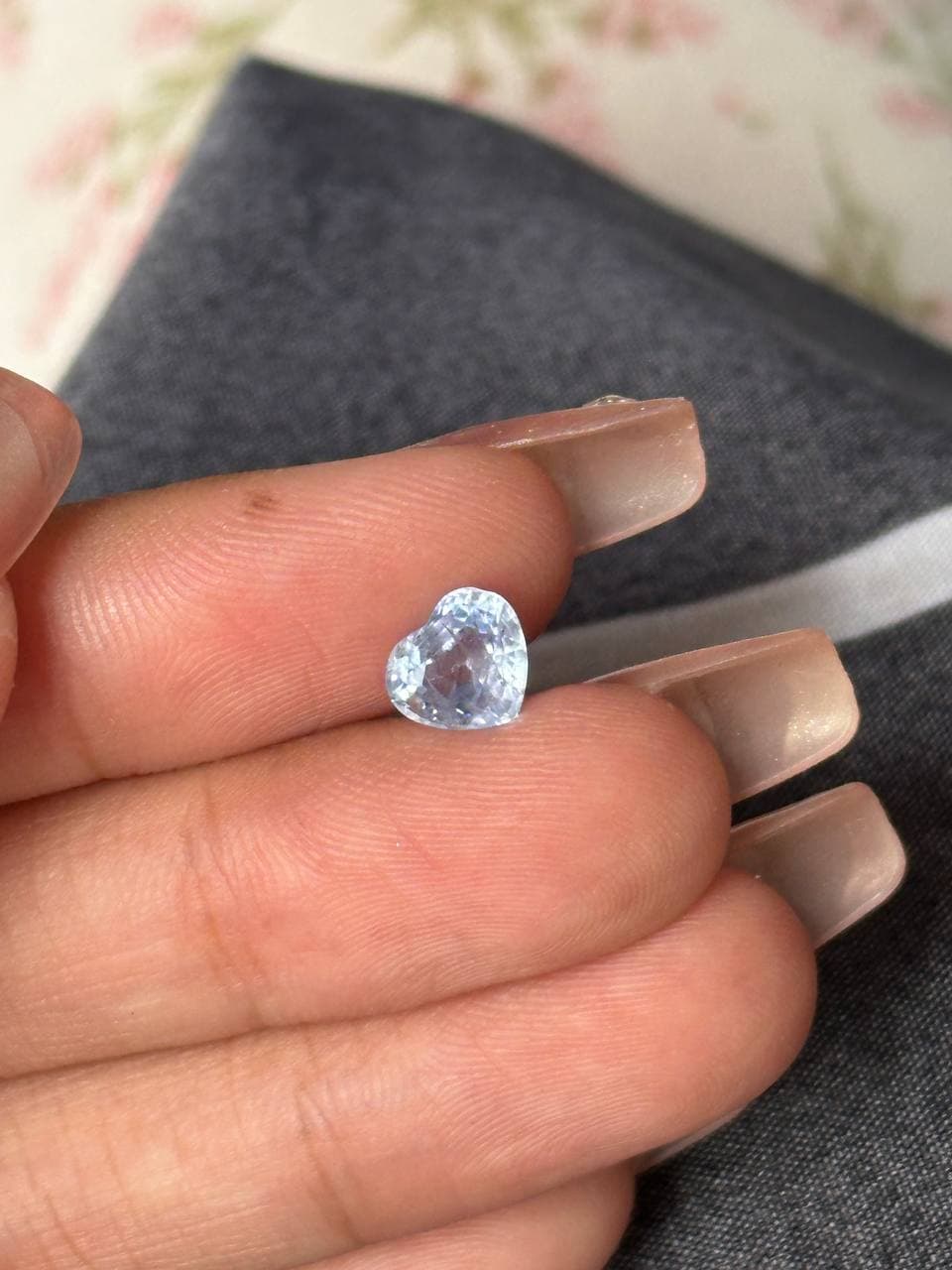 1.5ct 浅蓝色蓝宝石爱心 清澈透亮的浅蓝色,温柔又梦幻 爱心切工精致灵动,光彩夺目 质地细腻通透,净度高,闪耀迷人 小巧别致,佩戴出众,散发优雅气质