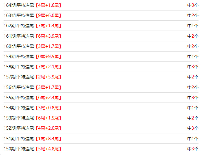 新澳门六合彩的【164期】平特连尾