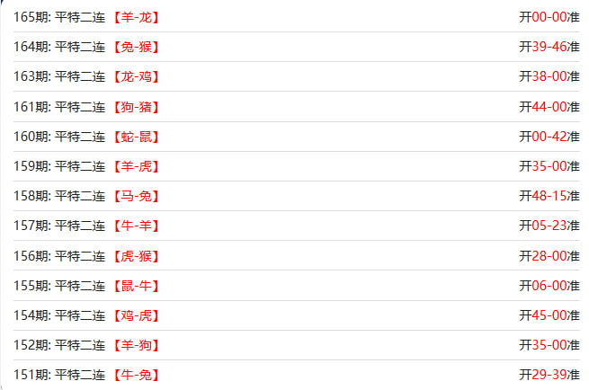 新澳门六合彩的【165期】平特二连