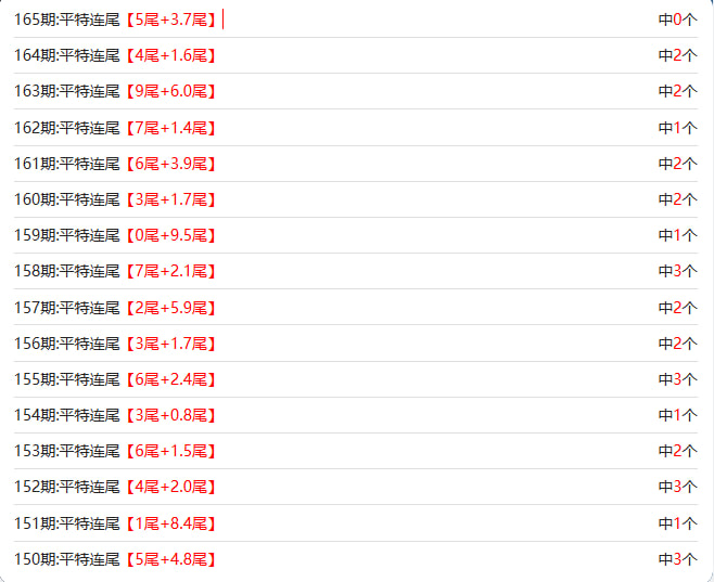 新澳门六合彩的【165期】平特连尾
