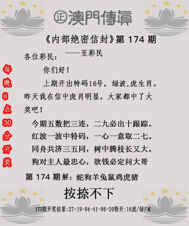 正澳门六合彩【174期】正版澳门福利传真