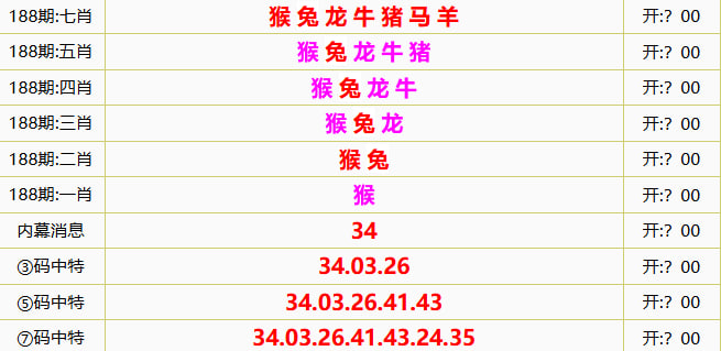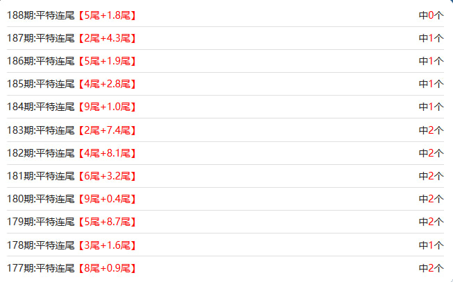 新澳门六合彩的【188期】平特连尾