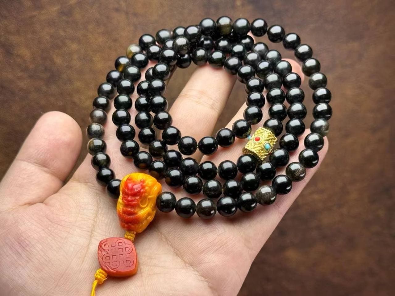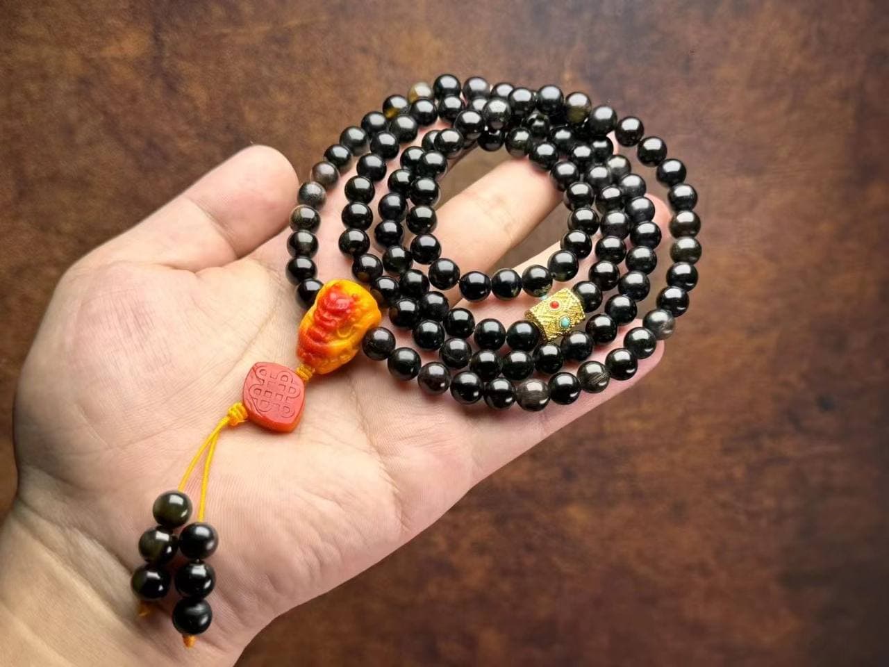 珍稀材质,纹理独特,每颗黑珠子都自带岁月痕迹与神秘气息