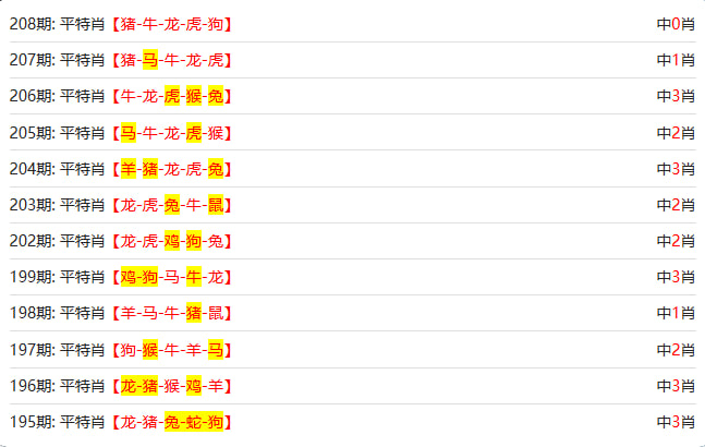 新澳门六合彩的【208期】平特连尾