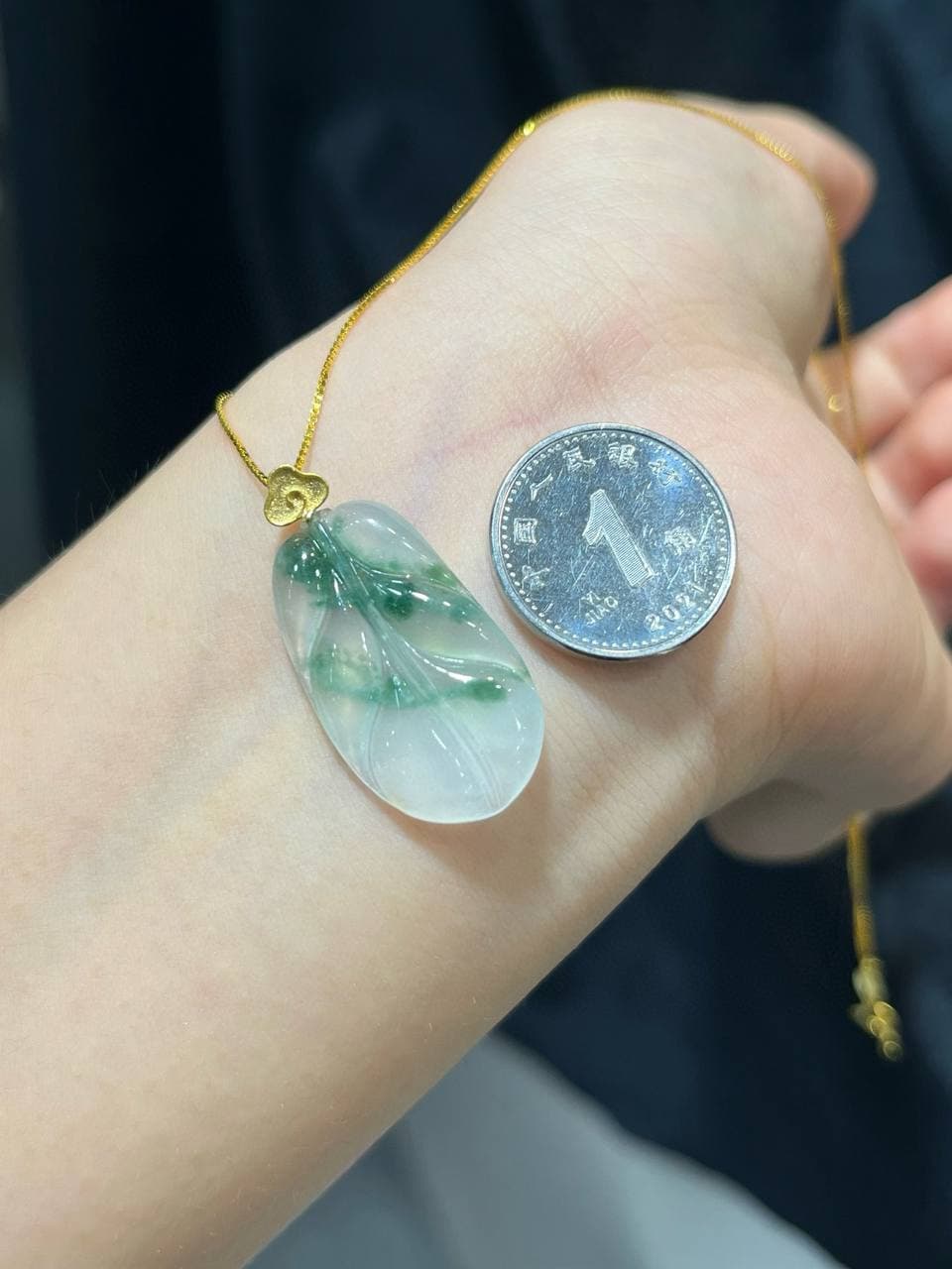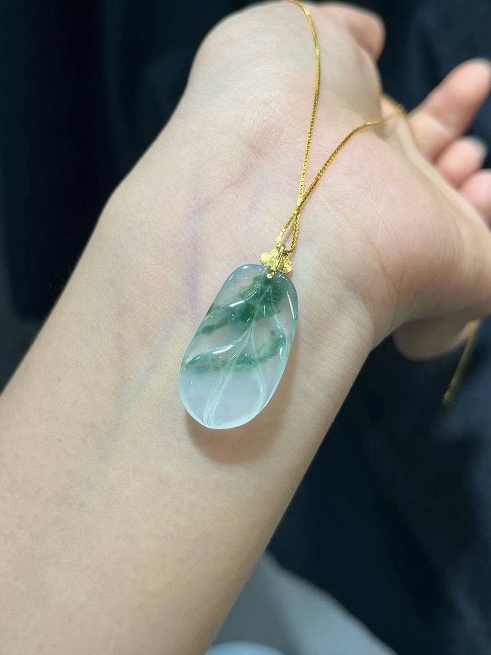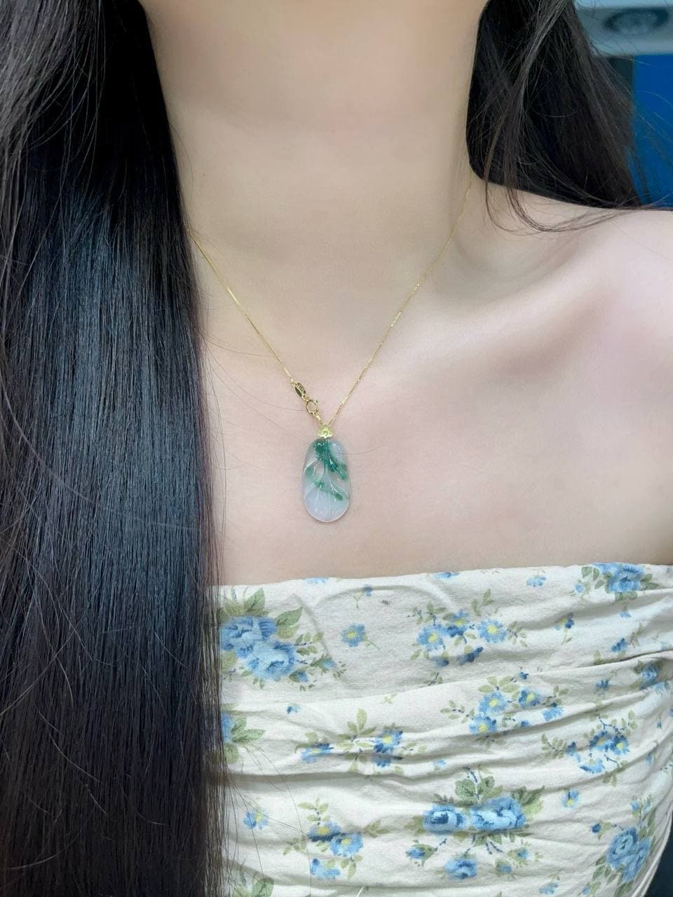 "冰飘绿·福叶项链"也是一款非常有文化内涵和寓意的珠宝。和之前的平安扣项链一样,这款项链的“冰飘绿”应该是指翡翠的色调,给人一种清新、透亮、冰洁的感觉,非常适合用来做精美的珠宝饰品。