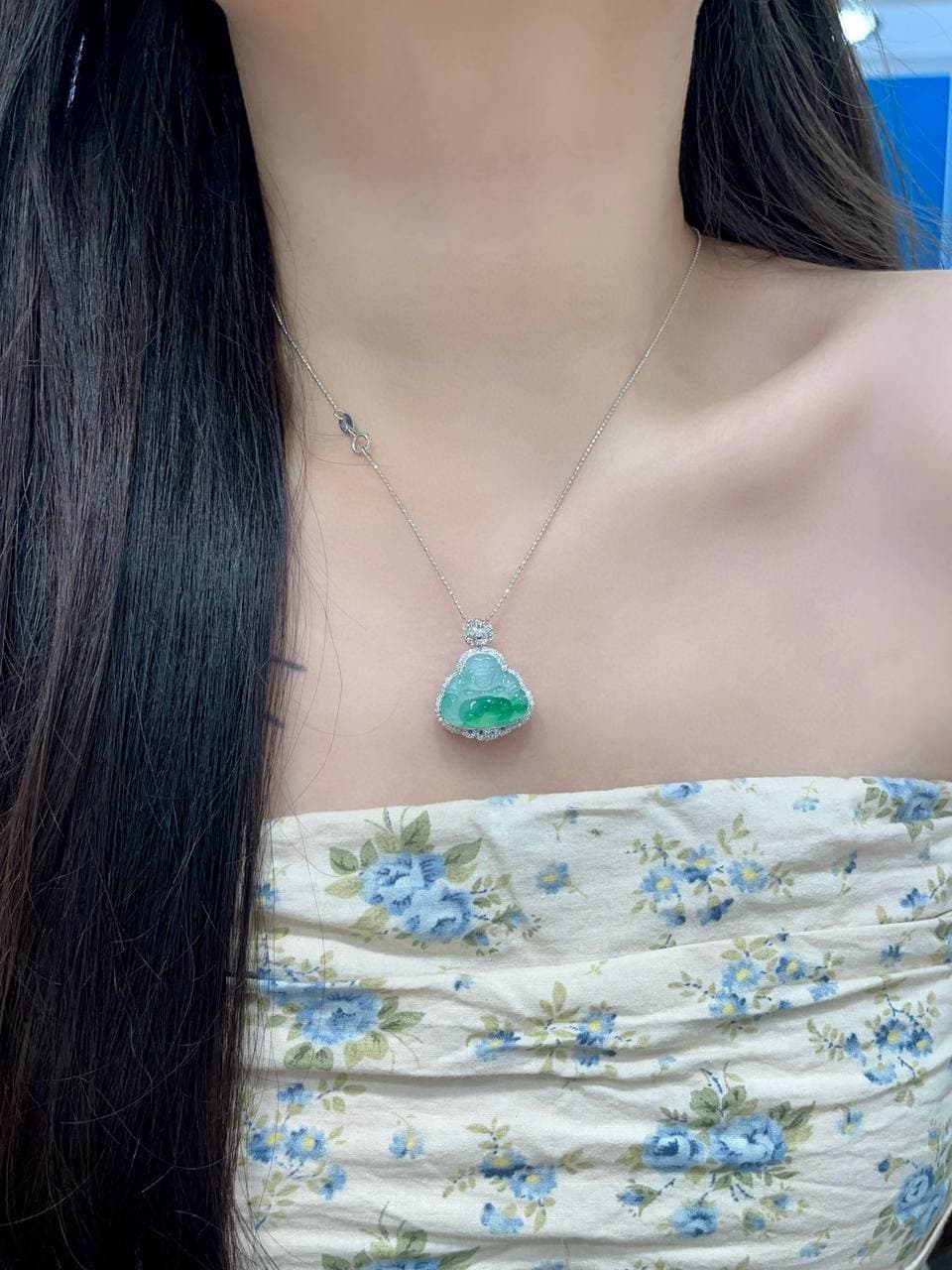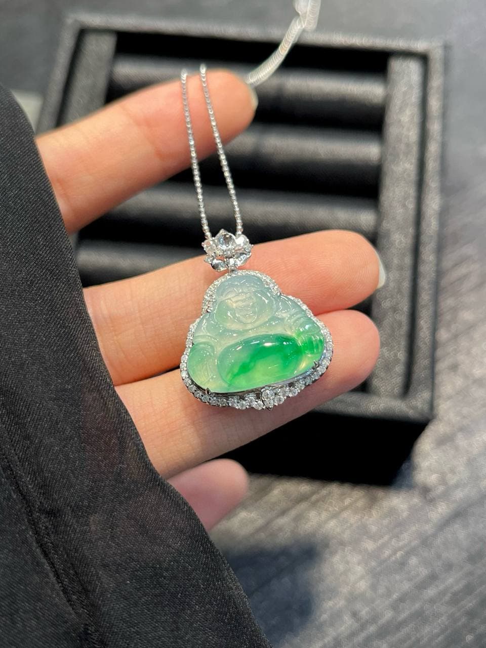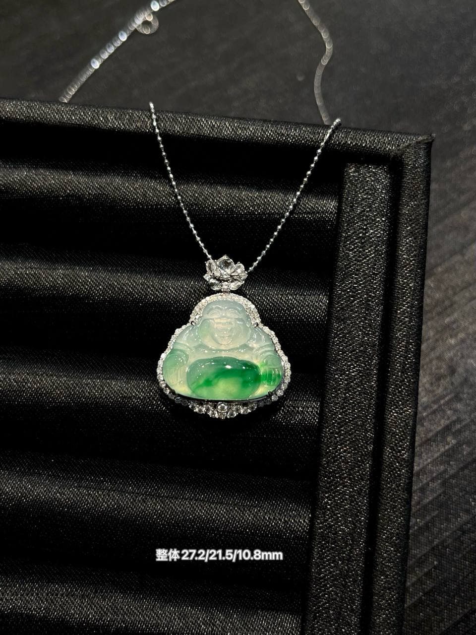 “高冰”翡翠是翡翠品种中透明度较高、种水极佳的一类。比普通翡翠更加清澈,呈现出一种透明的效果,光泽感强,常被认为质地细腻、晶莹剔透。