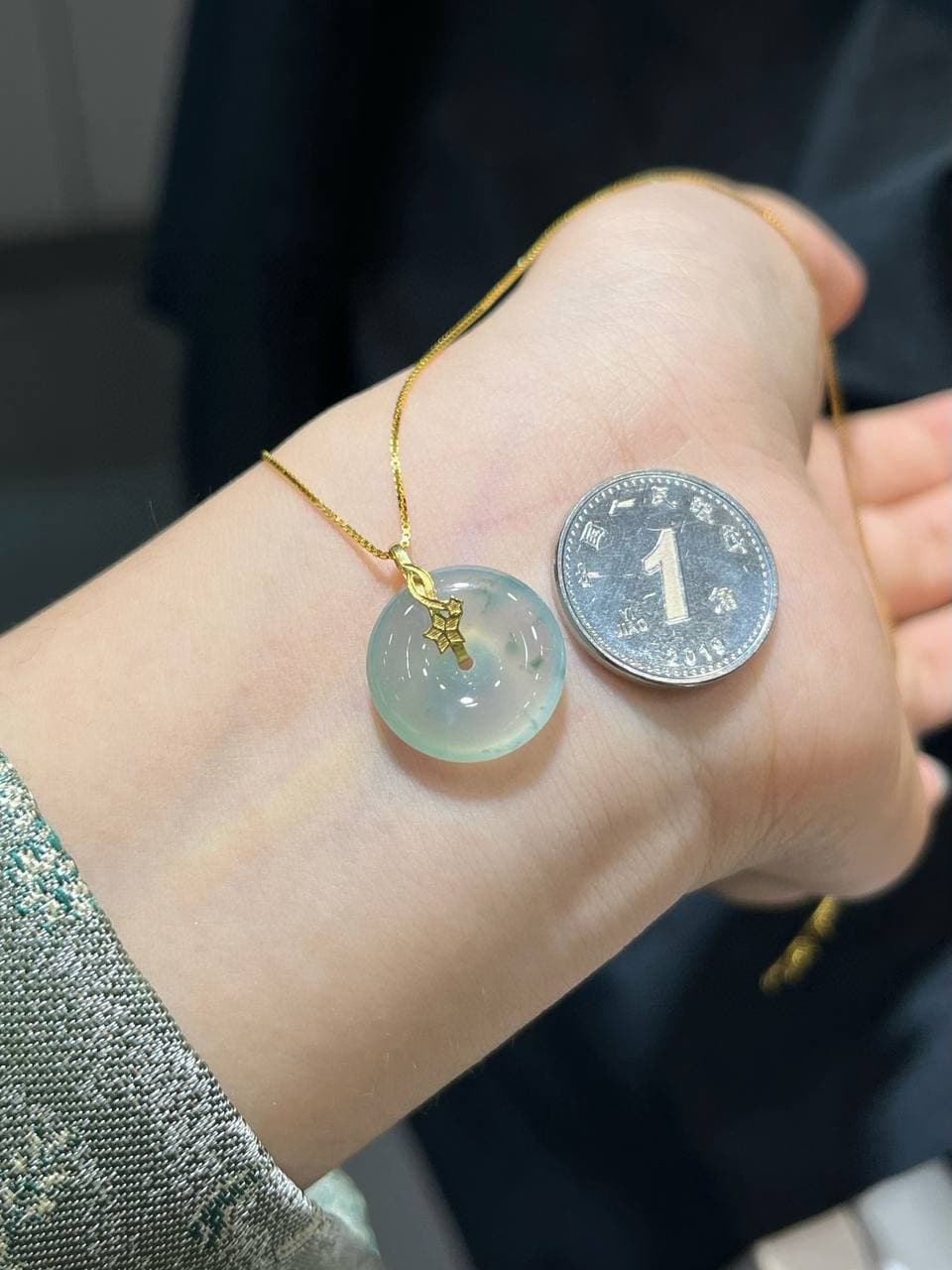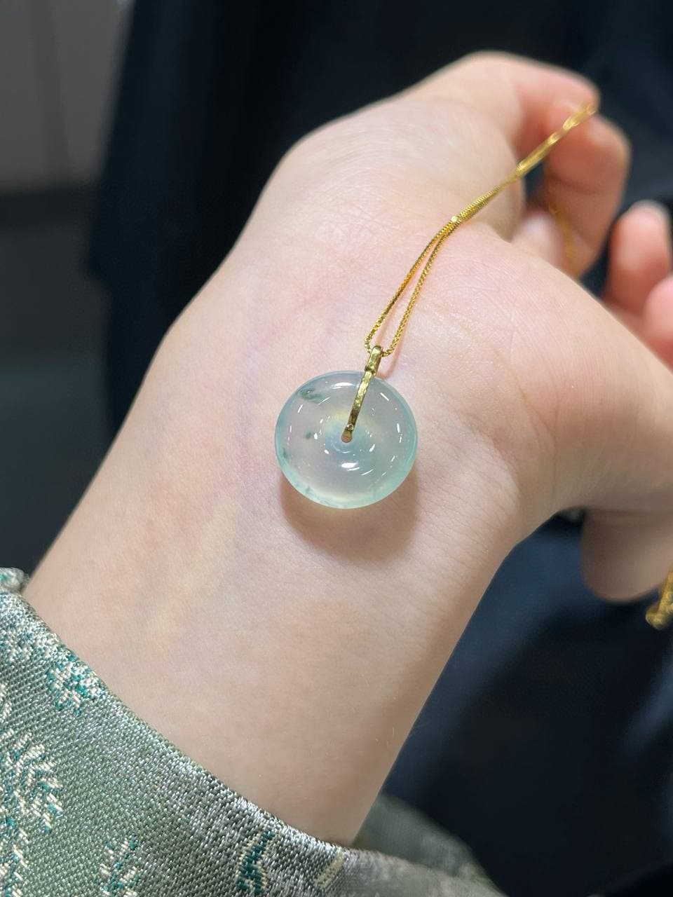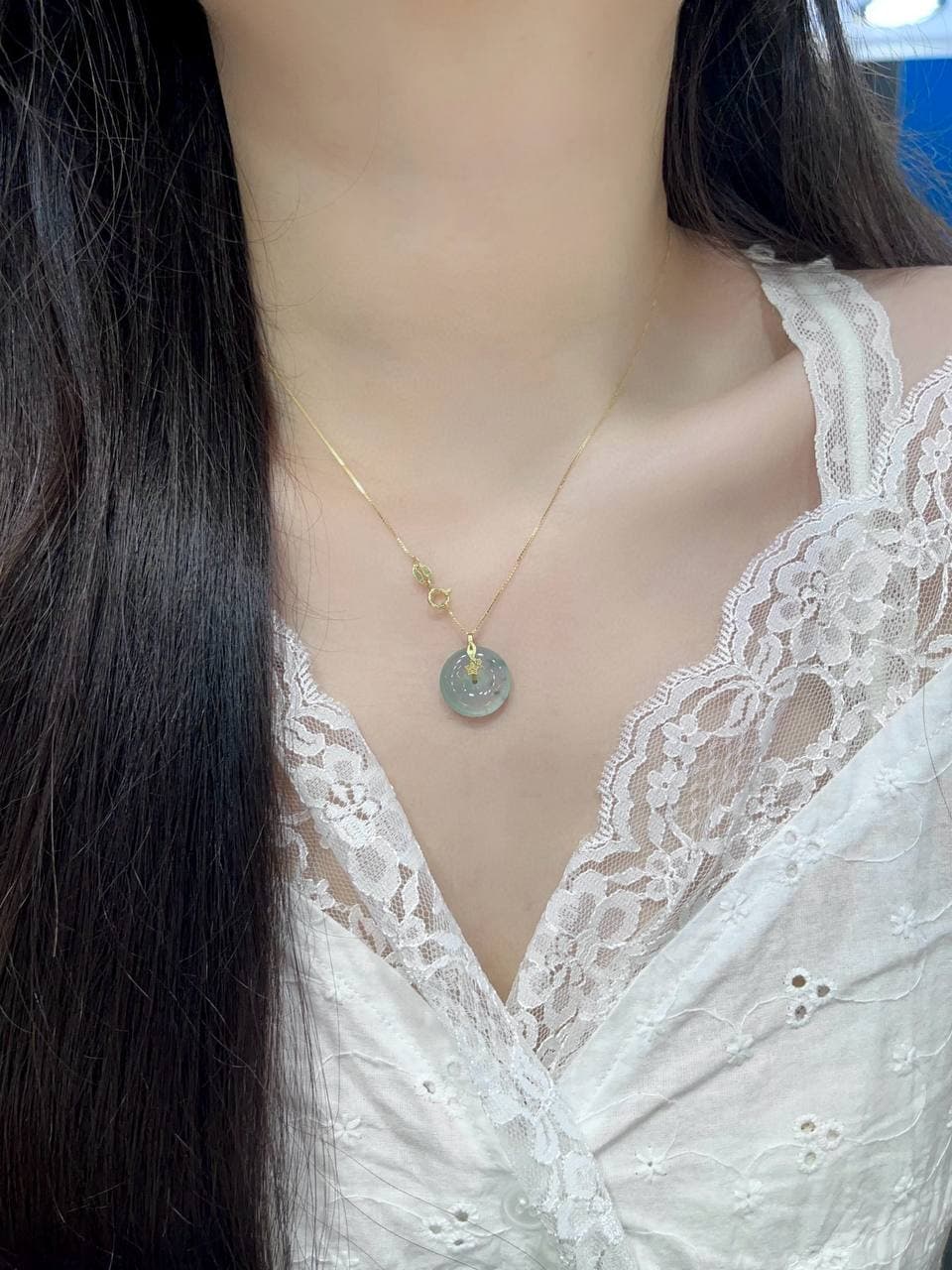 “冰飘花·mini 平安扣项链”(亦称“冰种飘花翡翠小号平安扣”)的展示图,供你直观感受其冰透质感与小巧设计。每一款都融合了轻盈飘花、圆润造型和寓意平安的传统文化元素。