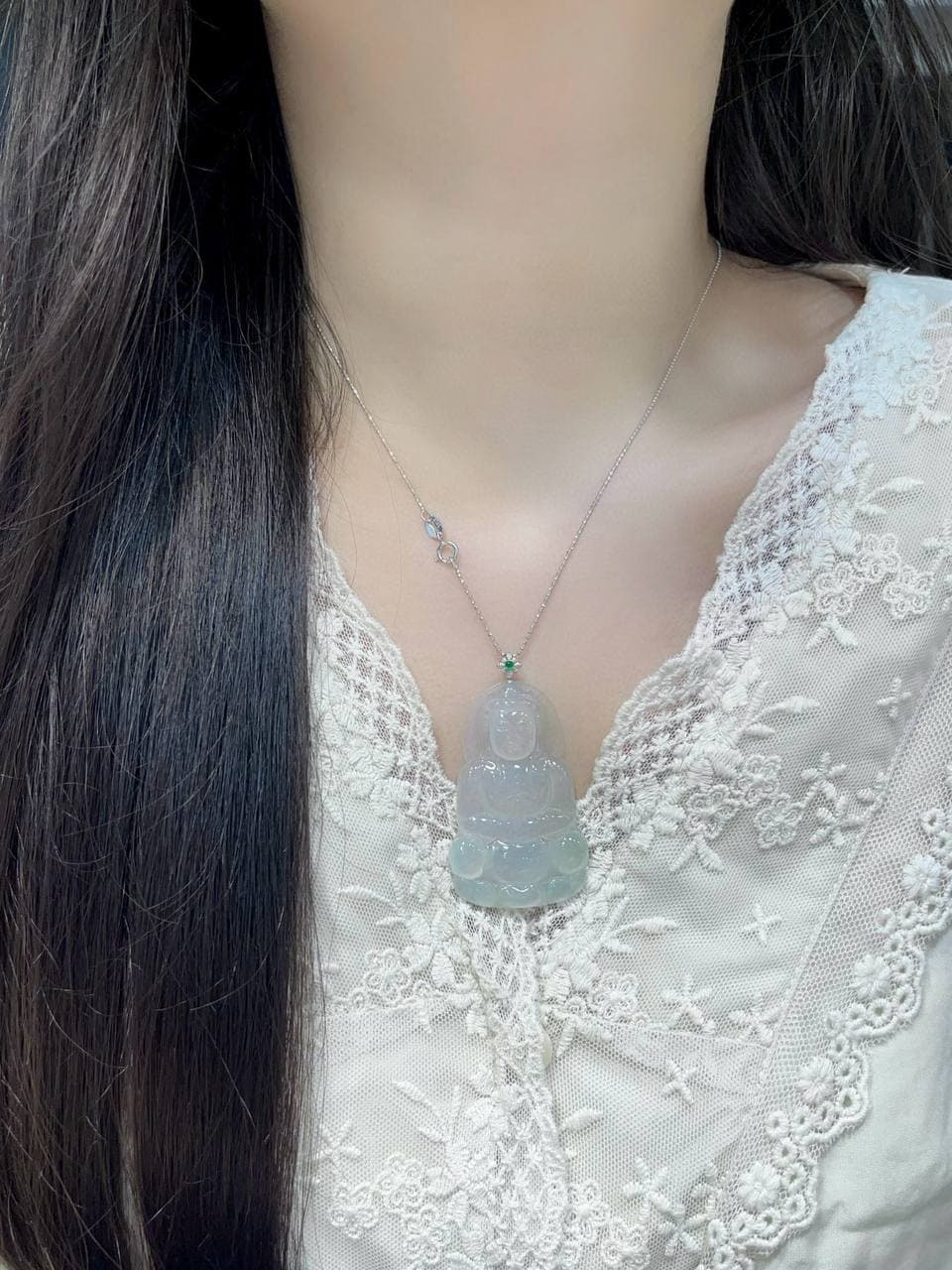 观音是佛教中的慈悲象征,代表着“观世音菩萨”。佩戴观音雕刻的翡翠饰品通常有祈福、保平安、消灾解厄的含义。观音菩萨慈悲为怀,能够庇佑佩戴者度过难关,带来安宁与健康。