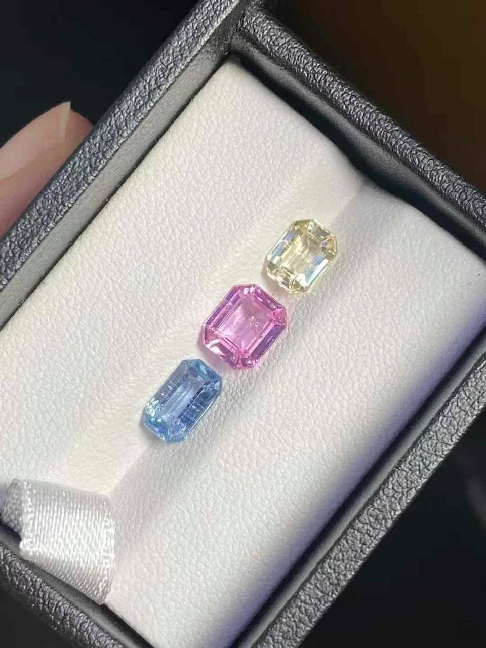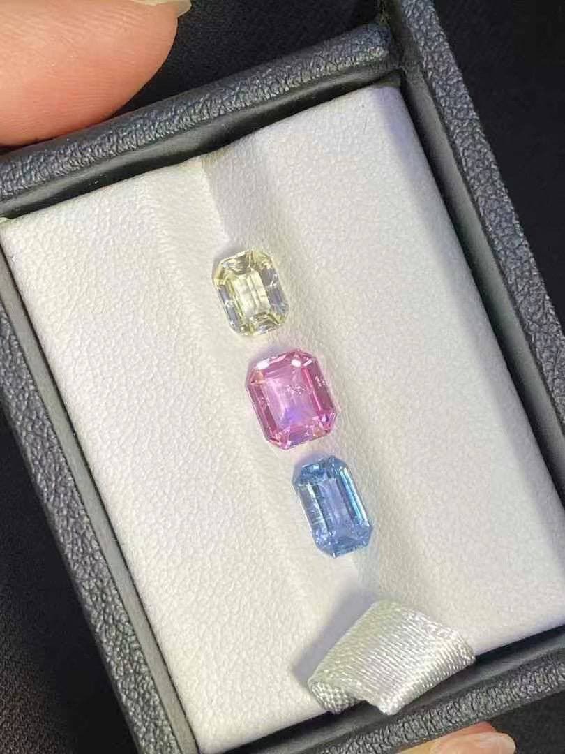 姐妹们这组三颗蓝宝,真的很难得 总重3.60ct,火彩很炸、净度又干净! 做三件套镶嵌、或者单颗戒指都OK~ 重点是颜色好统一,配戴绝对高级!