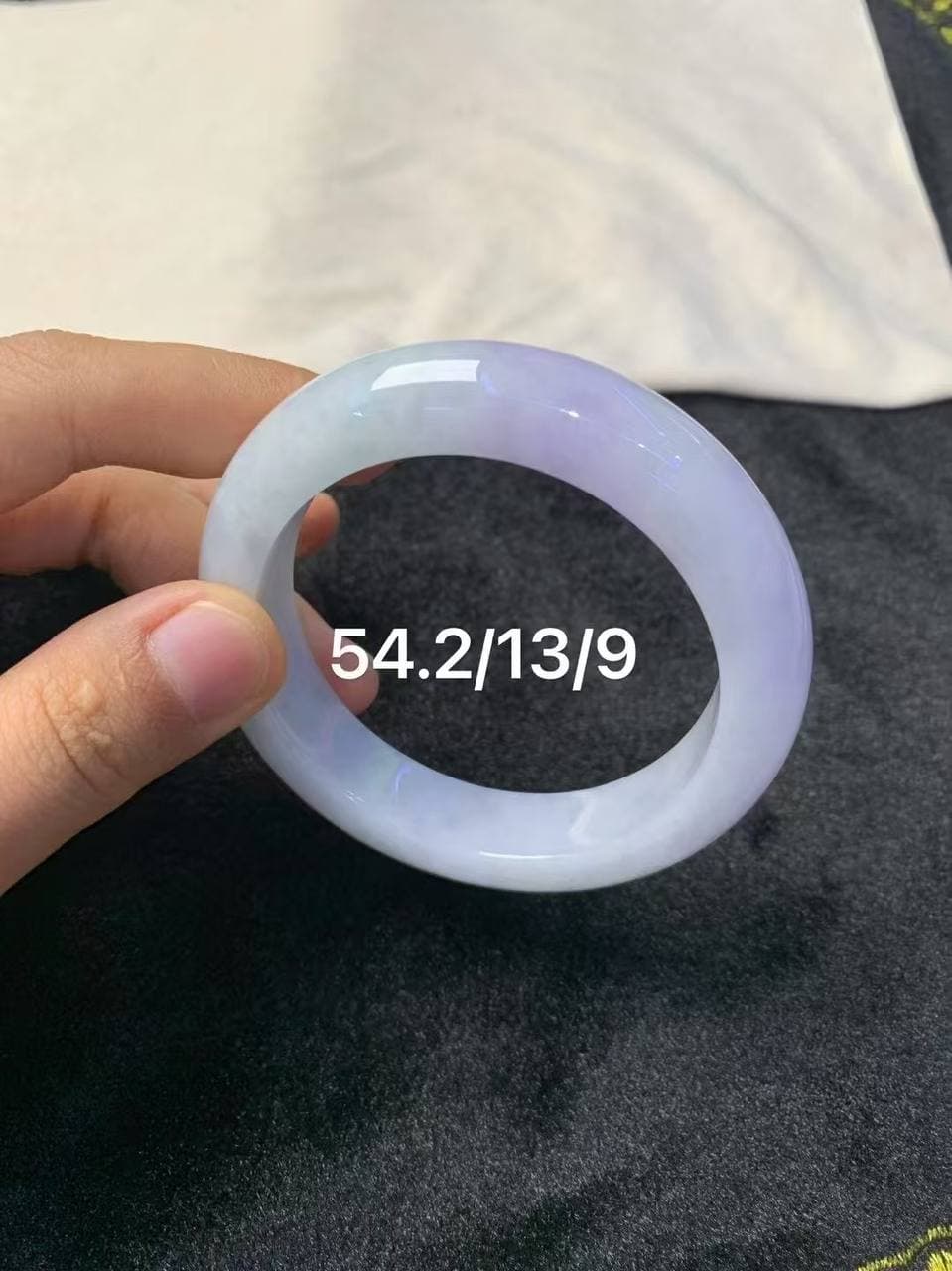 54.2圈口 紫气东来! 一条高糯化的紫罗兰手镯,温润有光泽,细腻度满分~ 紫调非常干净、柔和,带点仙气却不夸张,是那种越看越顺眼的贵气感 肉质细腻、胶感十足、底妆温柔,气质拉满! 属于戴上就舍不得摘下的那种手镯~超显肤白!