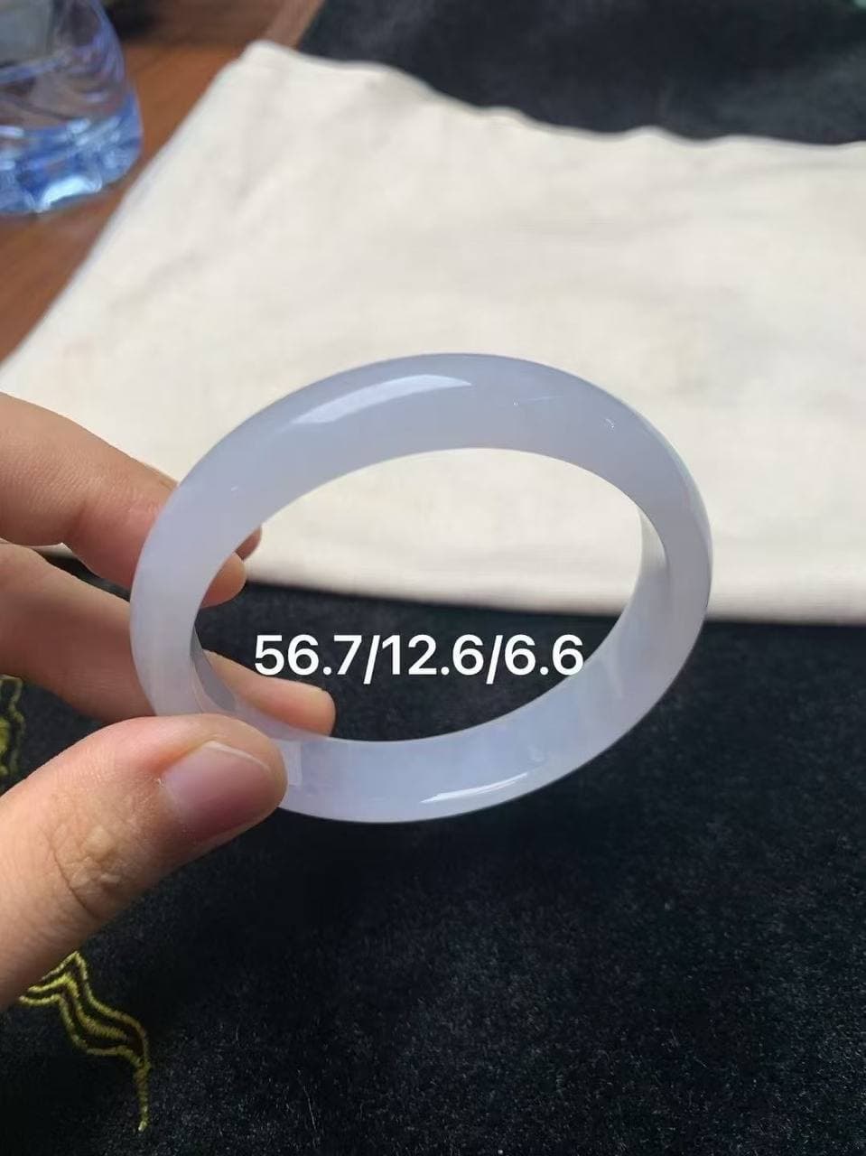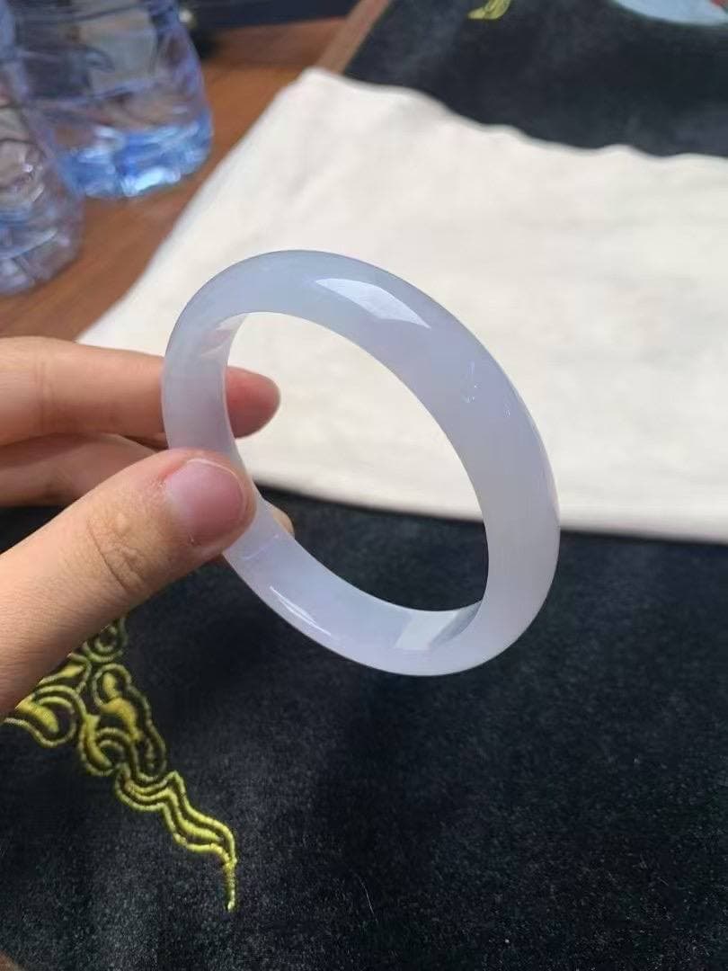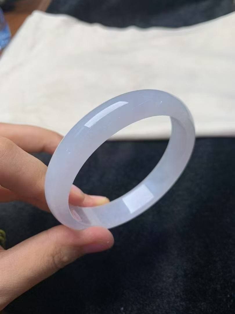 【56.7圈 · 白月光冰种翡翠镯】 真的是“白白净净”的绝绝子! 通体干净到发光,白得透白、润得高级,冰感十足却不冷淡 圈口刚好是黄金圈,佩戴贴手,出街上手就是清冷挂女主角本人 不挑肤色,不挑场合,是那种你戴上就舍不得摘的类型!