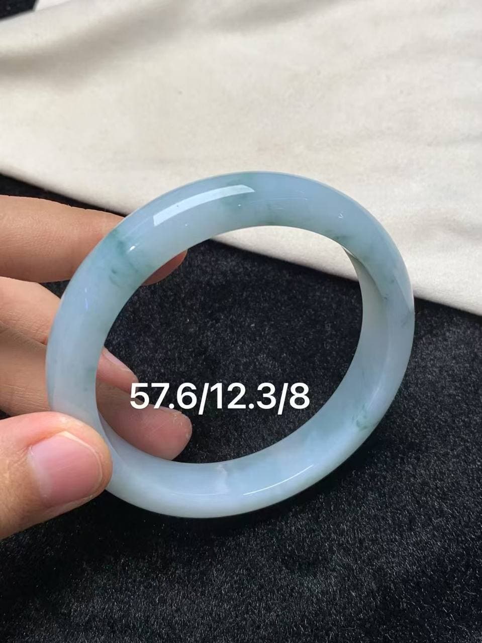 【牛奶底飘花 · 57.6圈翡翠手镯】 这是一支温婉又有气韵的手镯,奶白底色干净通透,飘花若隐若现,好似墨染轻描 无论是气质挂还是文艺风,这支都能撑起手腕高级感 圈口57.6,舒适大气,佩戴起来稳重大方 不张扬、不艳丽,却让人越看越喜欢,是那种“养人又耐看”的温柔型翡翠代表