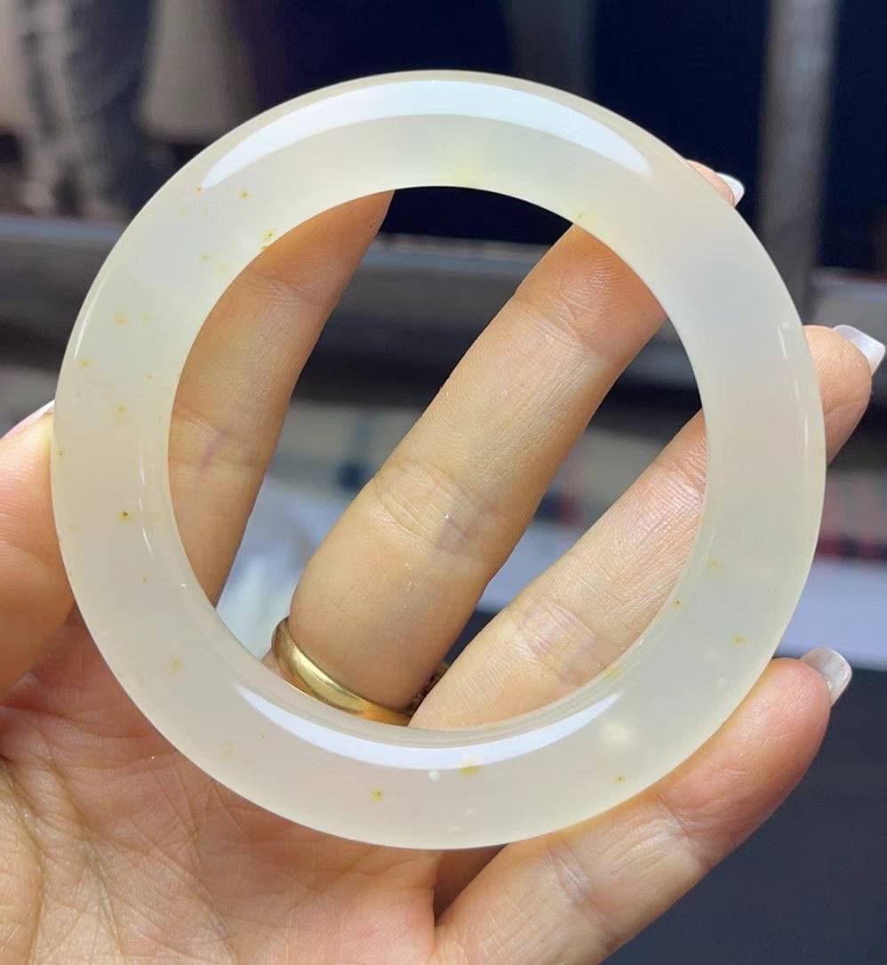 水沫玉手镯,淡淡的黄调好温柔~ 圈口56,条形10.9-11.7,尺寸刚刚好 清清透透的底子,带点阳光感的浅黄,看着就很舒服 没有压力的通勤款,百搭、显白、性价比高! 喜欢这种清冷又不失温度的感觉~
