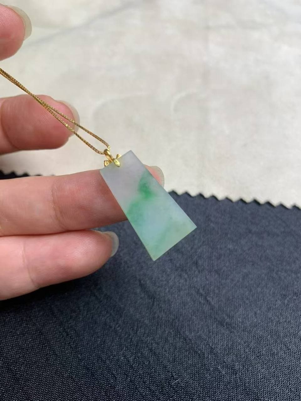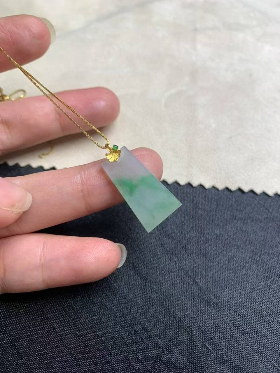 冰飘绿花无事牌,真的太有意境了 底子冰润通透,绿花自然流淌,像山水画一样雅致 18K金扣头镶嵌,细节里尽显质感 没有多余雕刻,更显静谧与力量 佩戴上身低调又有气场,男女都可驾驭,特别推荐!
