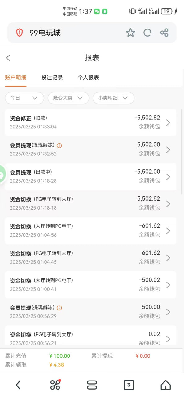 【黑平台曝光|99电玩城黑了我5500元!】