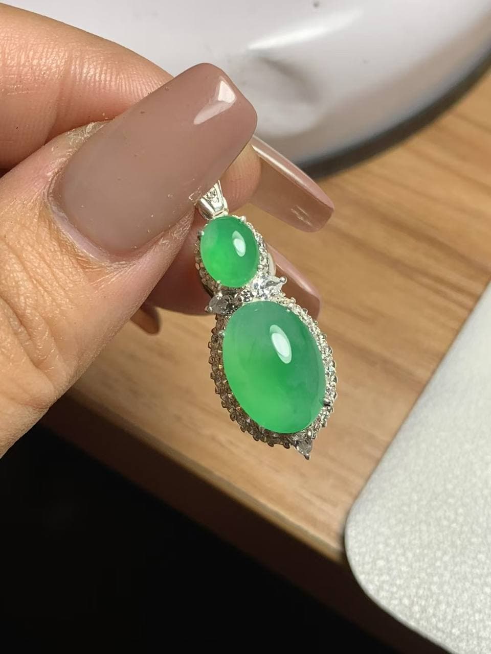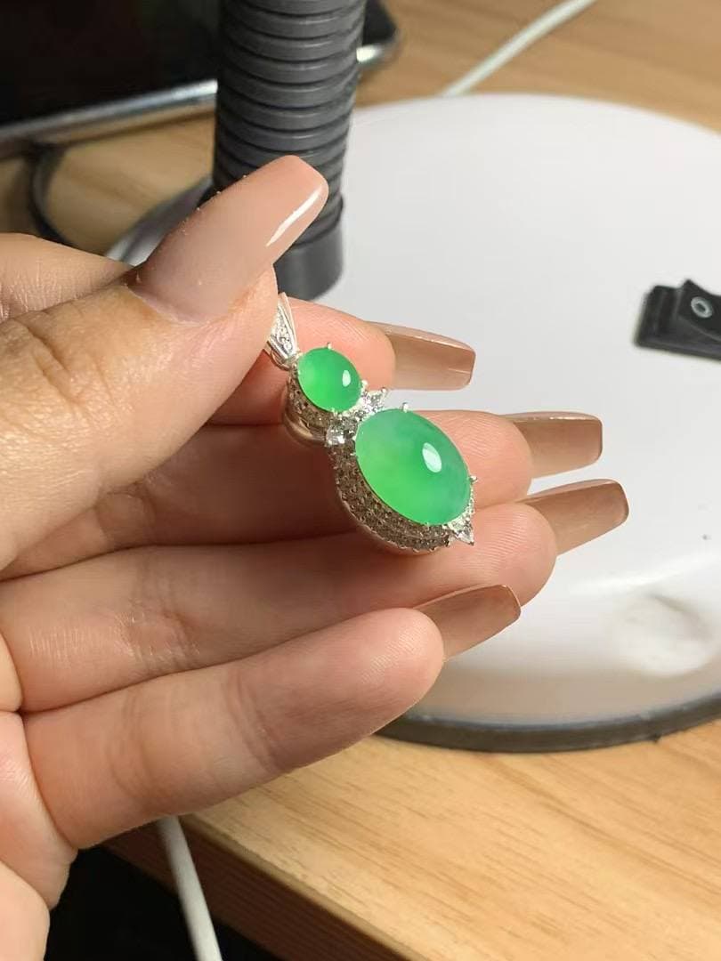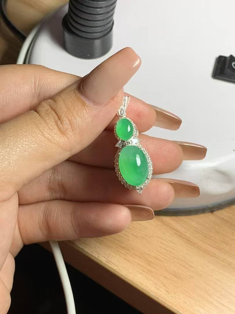 冰种大鸽子蛋,果阳绿调太吸睛了~ 底子冰润,通透感很舒服,飘了一抹天然绿花,灵气十足 虽有些棉纹,但完全不挡它的通透和气质,反而多了点自然原生感 上手就是大气款,想要有辨识度、有个性的翡翠,这颗太合适了! 喜欢不千篇一律的美,就来看看它吧~