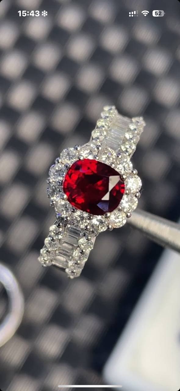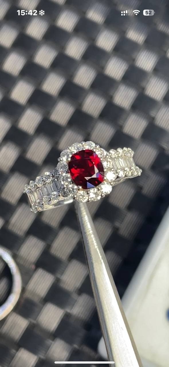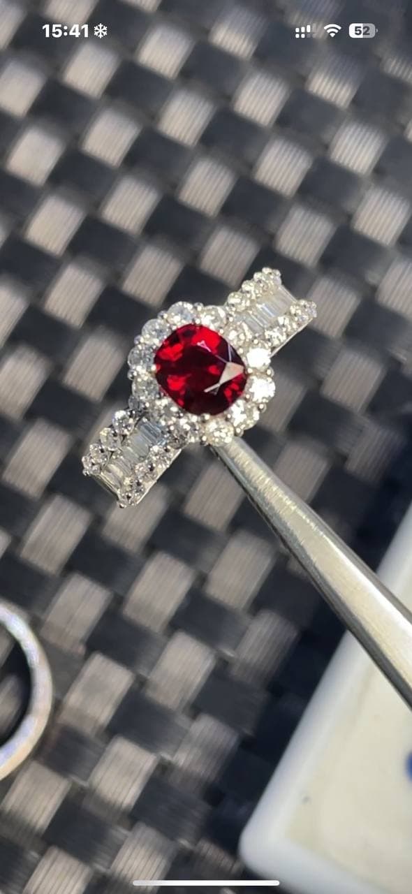 鸽血红宝石+真金真钻镶嵌,质感真的绝了! 颜色浓艳饱满,一眼就抓人,经典鸽血调太有气场 搭配真金真钻,光影流转间尽显高级 不是普通红,是那种“越看越贵”的红 适合懂宝石、也适合送给特别的人!