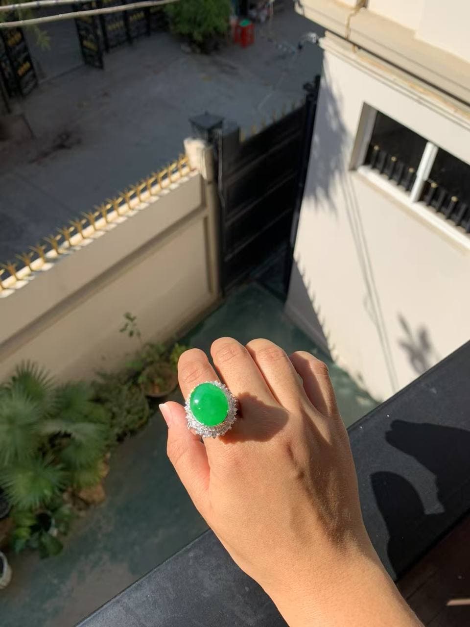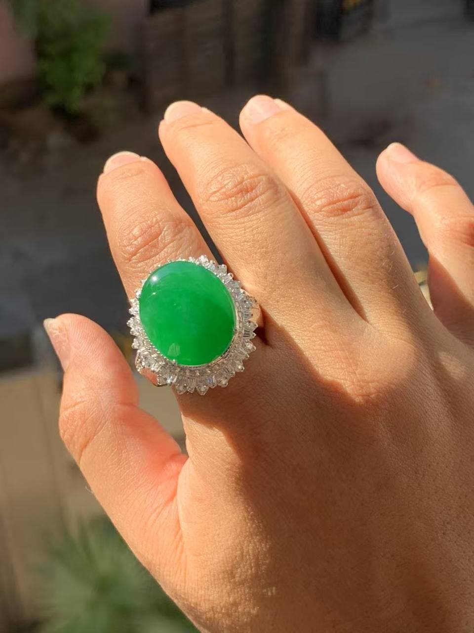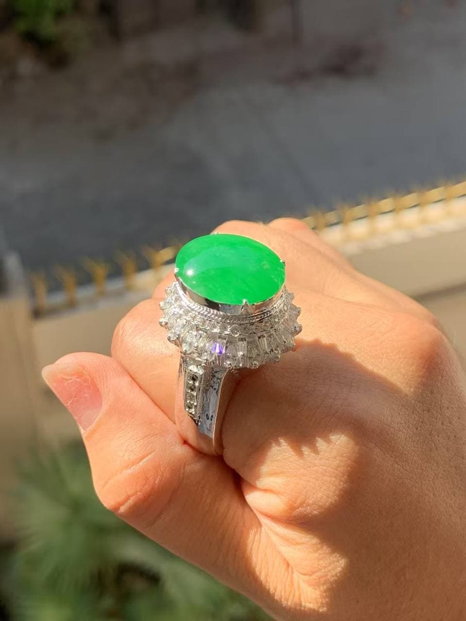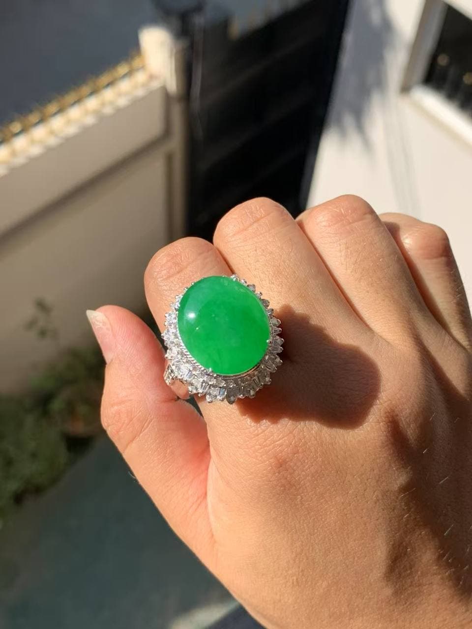 鸽子蛋戒面 · 玉润生辉 饱满圆润,如初雪落玉,气场不语自现。 天然细纹,如云似烟,是玉的呼吸,也是独一无二的印记。 戒面如鸽子蛋般夺目,佩戴即成焦点。 可镇气场,也可藏温柔,一枚在手,尽显大女主风范。