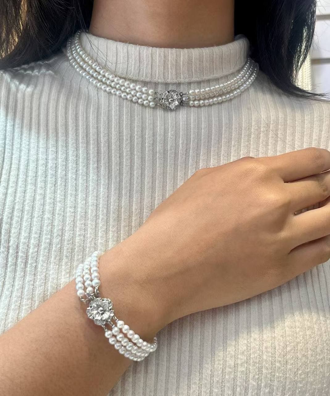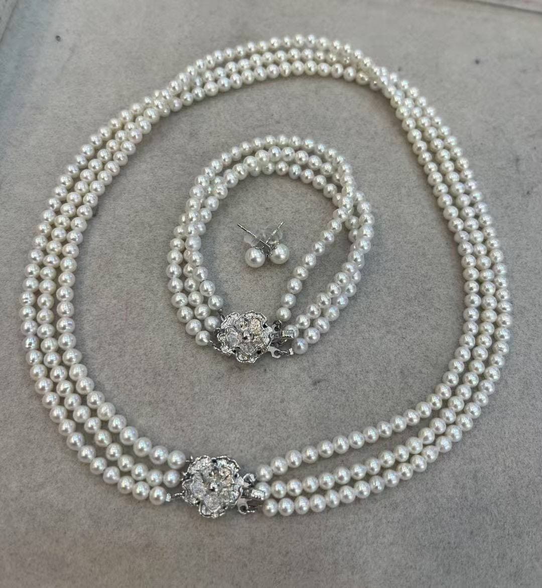 淡水珍珠小套装|耳钉5–6mm|吊坠&手链4–5mm|925银扣 复古气质款,搭配简约裙子超级出片~ 珍珠光泽温柔,颗颗圆润小巧,精致耐看 耳钉、吊坠、手链一整套,轻松拿捏法式氛围感 喜欢Fashion Jewelry的姐妹别错过,性价比超高