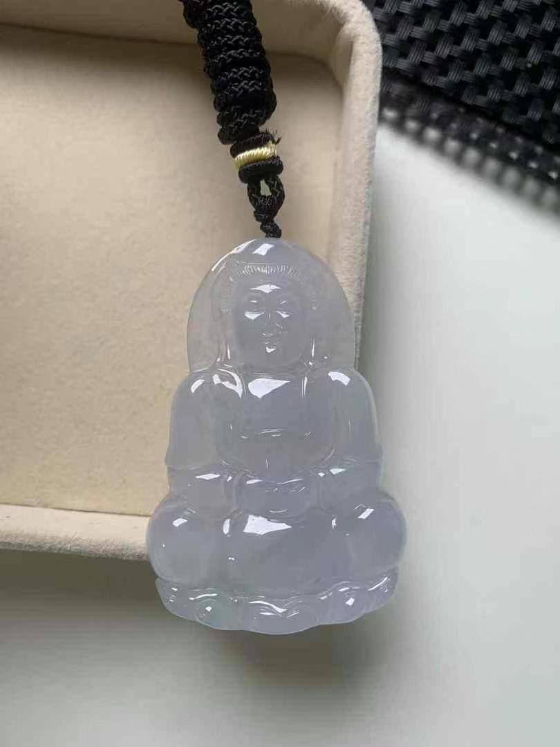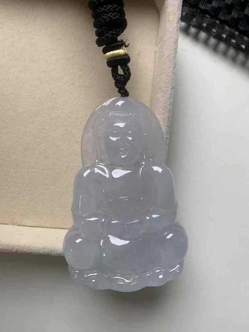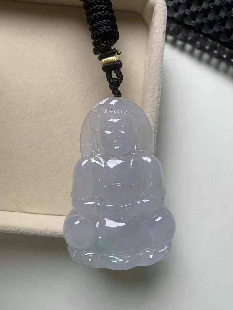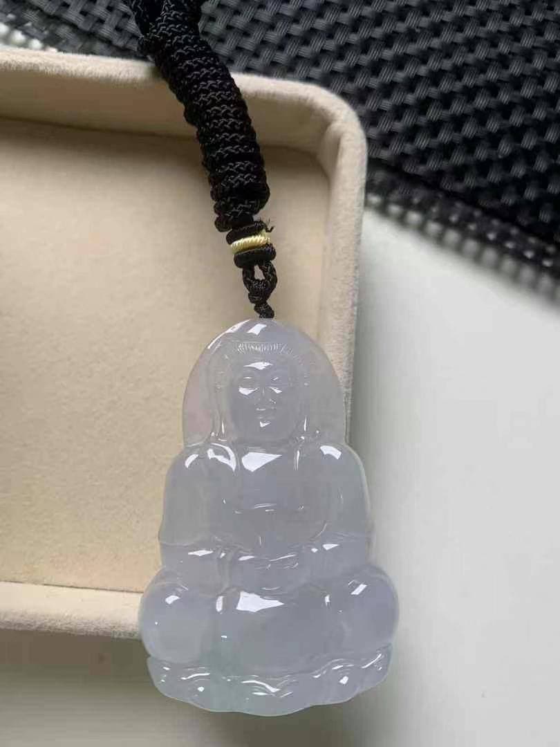 冰种观音吊坠|36.5×55.3×6.1mm 通体冰透,质地清澈纯净,晶莹剔透如寒泉 线条素雅流畅,无多余雕饰,更显静谧庄严 纯洁无瑕,品相完美,整块料干净通透无挑剔 佩戴沉稳大气,静中藏光,气韵悠长