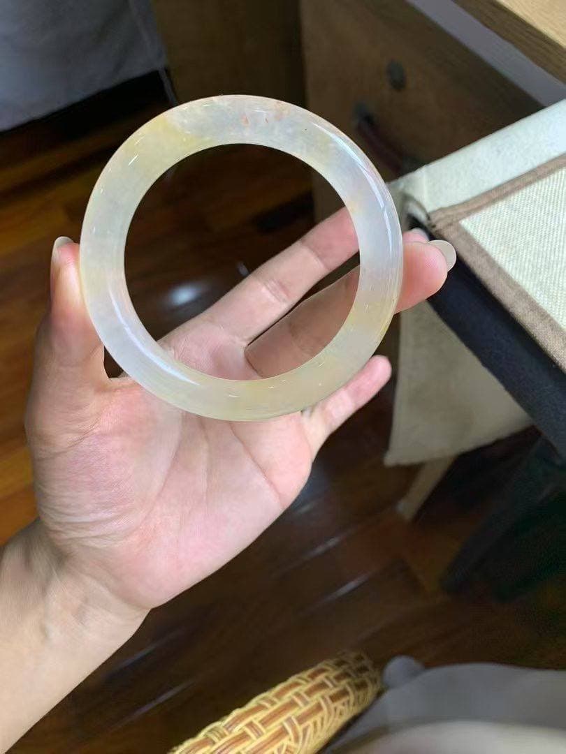 天然水沫玉手镯|55.9×10.6×10.3mm 通透感极佳,冰感清凉,质地温润干净~ 无纹无裂,整条状态优秀,佩戴安心舒适 线条饱满顺手,日常通勤或送礼都合适 低调中透着灵气,越看越耐品